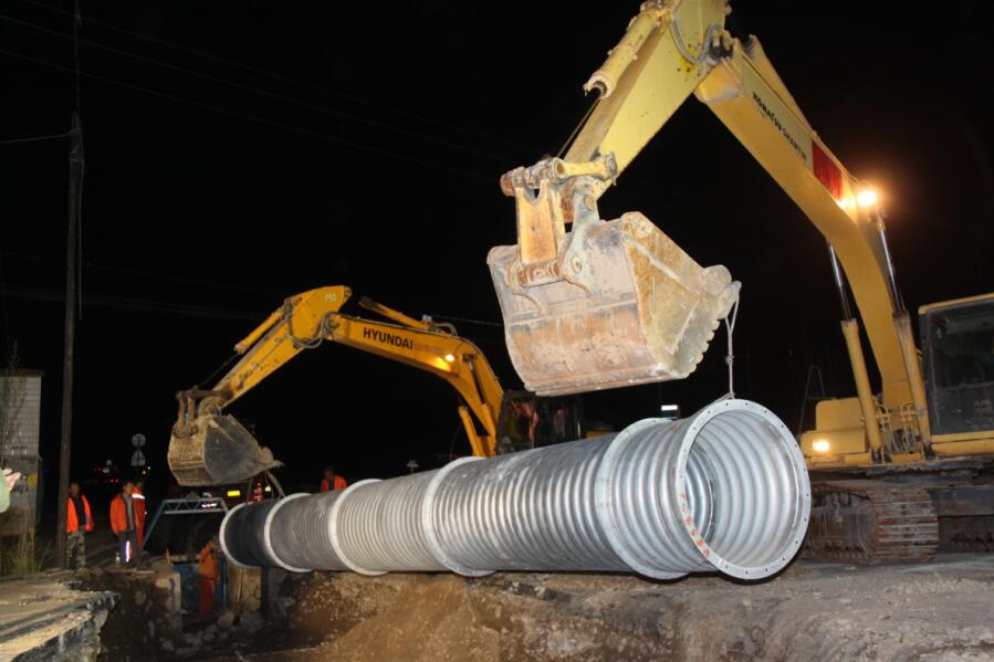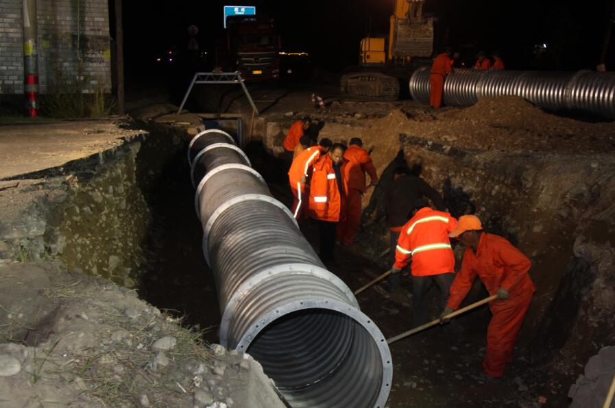 凌晨零点,涵洞改建工程正式施工,放样、焊接钢波形管涵,样样都是技术活。此时站在施工现场指挥钢波形管涵的技术人员赵林栋,和其他技术员一样,黝黑的脸庞近似有点凝固,表情严肃、沉重。赵林栋是凉州段80后桥梁工程师,工作中任劳任怨,严谨细致,在单位需要时“呼之即来,来则能战”。毋庸置疑以前备受质疑的80后,目前已是公路养护的中坚力量,他们将青春和汗水挥洒在路上,在这里实现自己的人生价值。 在前不着村、后不着店的路段深夜抢修,是公路养护人员经常遇到的事情,深夜作业,机械的轰鸣声让人久久难忘,想喝上一口热水、吃上一口热饭更是奢望。施工现场,工人们挥汗如雨,干劲冲天。